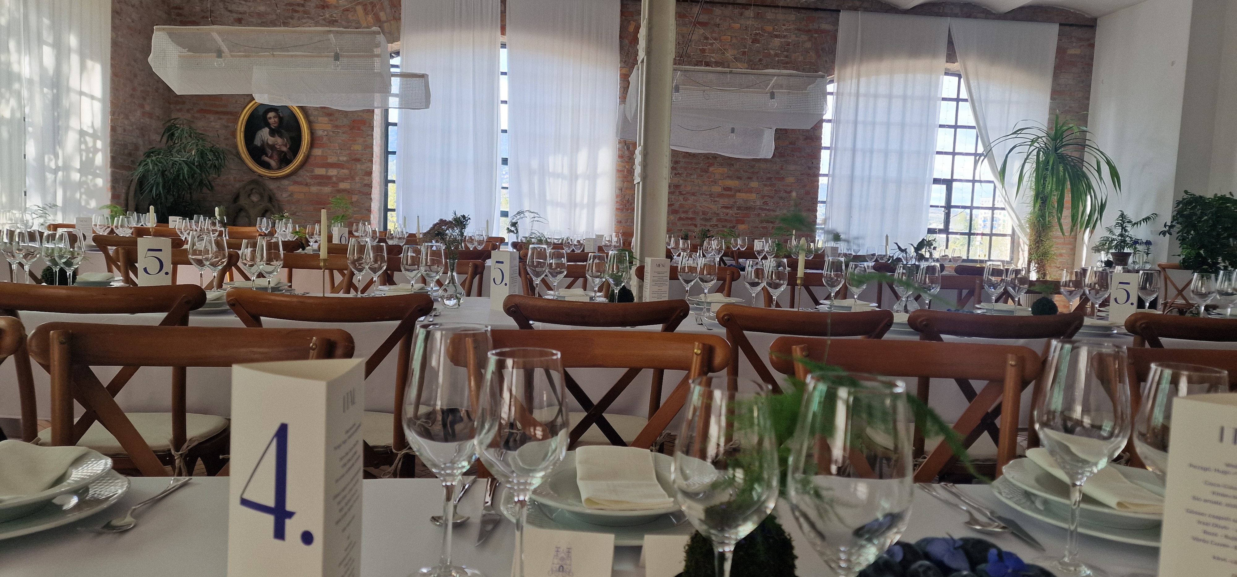 Sok stílusos elem ebből kifolyólag adott volt, de a tulajdonos hozzáértése, valamint a műtárgykereskedelemben szerzett komoly tapasztalata segített mindezt kiemelni, és még kifinomultabbá tenni. Így lett fiatalos, eklektikus, modern miliő, tökéletes helyszín egy fancy esküvő számára. Az épületre jellemző hatalmas ablakok elárasztják fénnyel a termet.