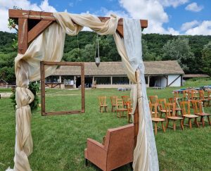 Szinte minden adott a tökéletes, szabadtéri esküvőhöz. Fedett, mégis nyitott pajta épület, ideális laza, de igazán családias esküvőhöz.