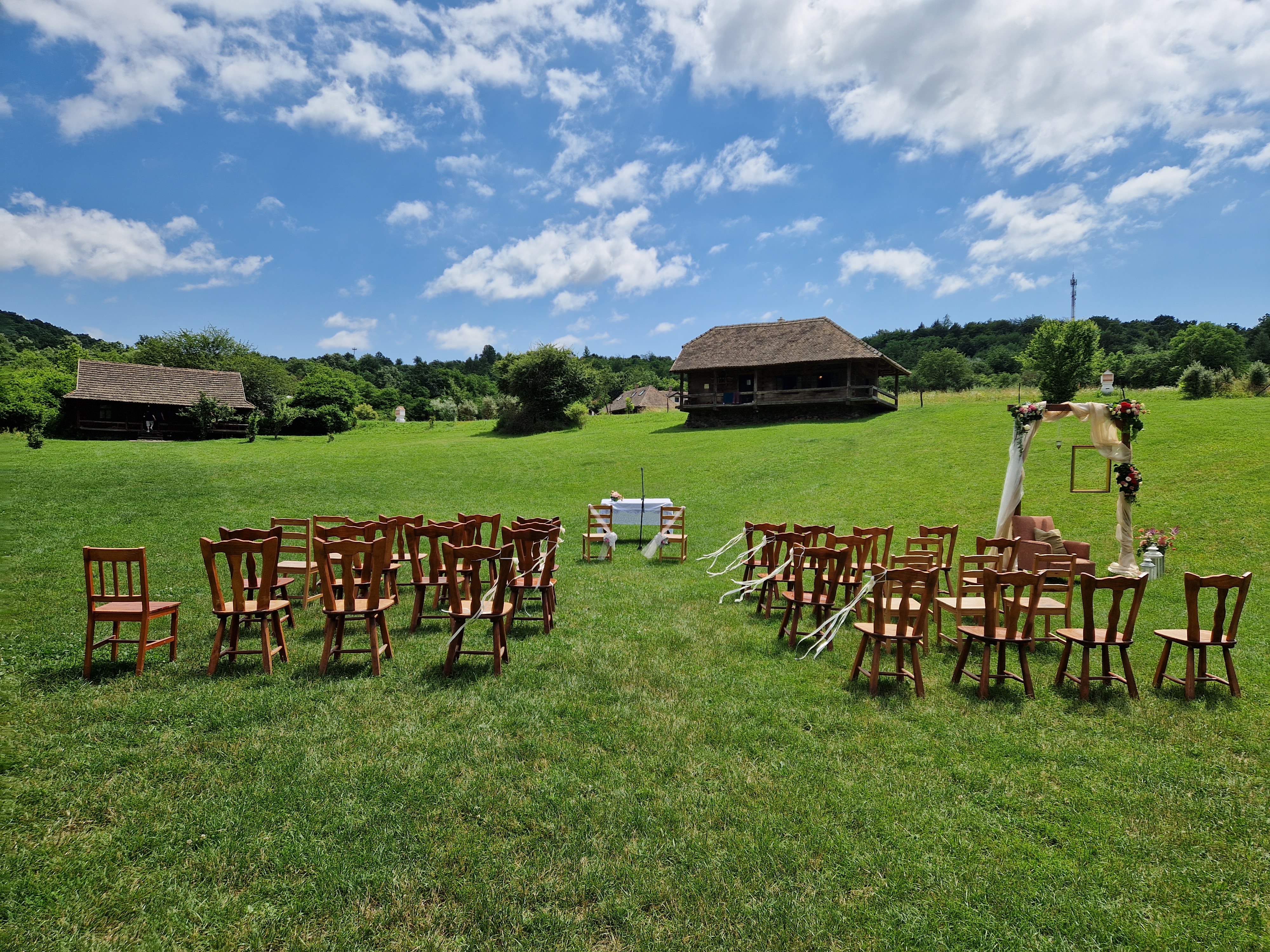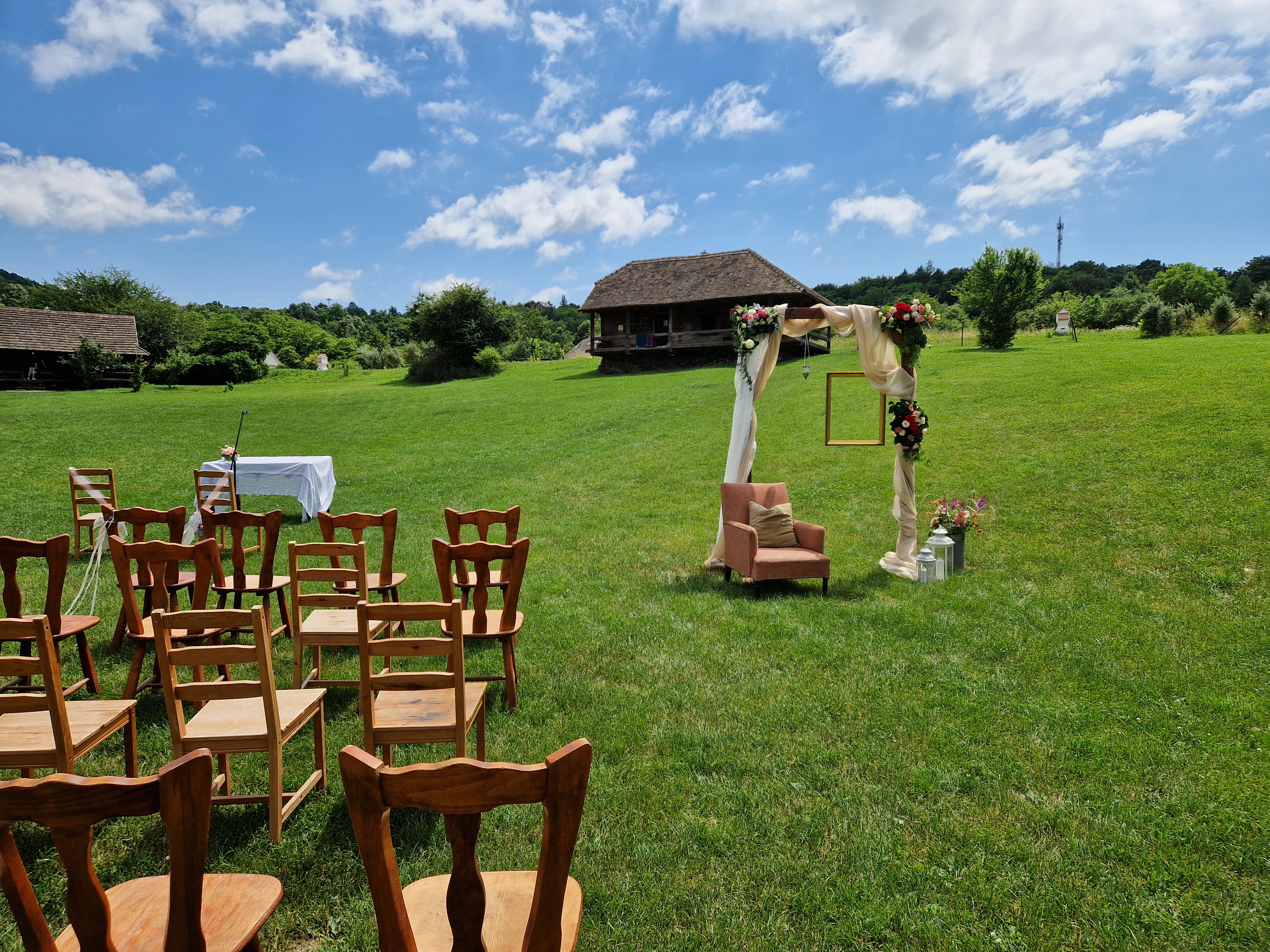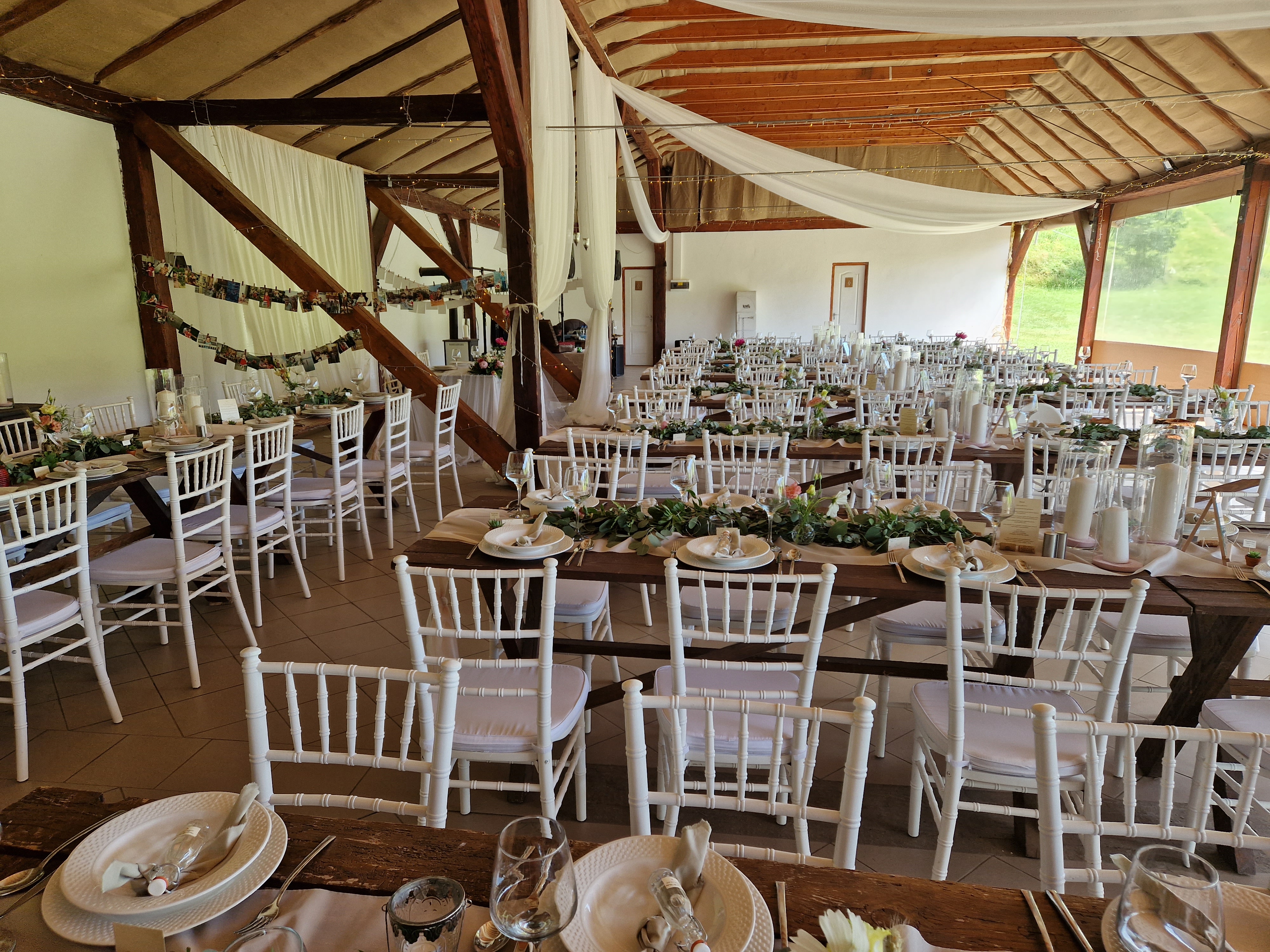 Szinte minden adott a tökéletes, szabadtéri esküvőhöz. Fedett, mégis nyitott pajta épület, ideális laza, de igazán családias esküvőhöz.